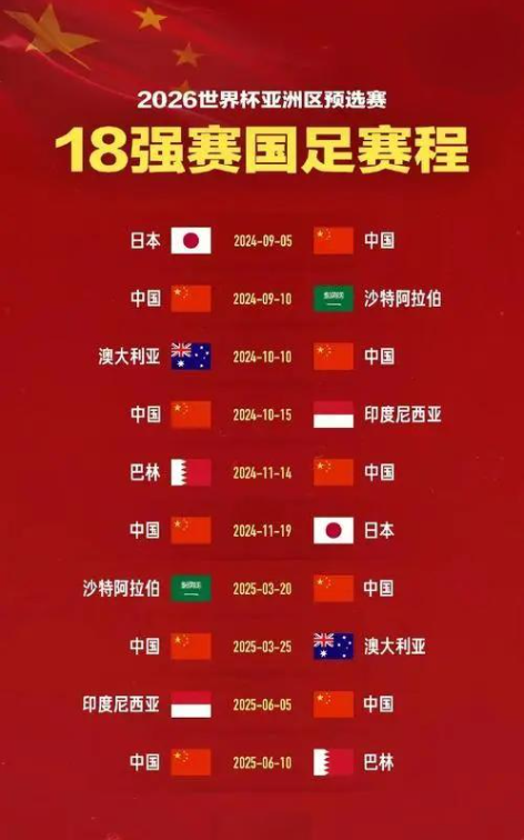 在接下来的第3轮至第5轮比赛中,国足将分别面对澳大利亚、印度尼西亚和巴林。这三场比赛将是国足争取积分的关键阶段,对最终排名有着决定性影响。